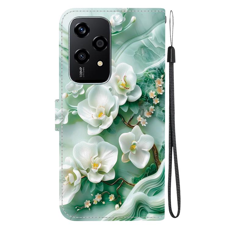 Funda de Cuero Honor 200 Lite con Dibujo a Color y Textura de Cristal (Flores de Jade)
