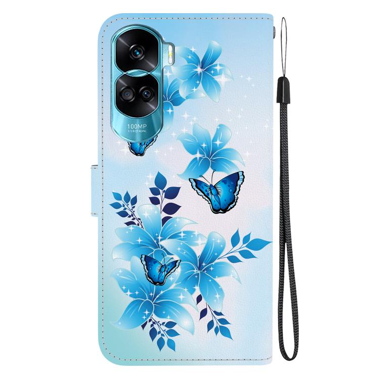 Funda de Cuero para Honor 90 Lite con Dibujo de Colores y Textura de Cristal (Mariposas Azules)
