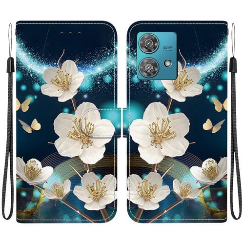 Funda de Cuero Motorola Edge 40 Neo con Dibujo de Colores y Textura de Cristal (Magnolia)