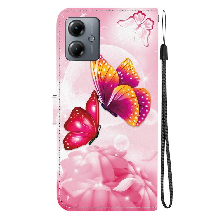 Funda de Cuero para Motorola Moto G14 con Dibujo de Colores y Textura de Cristal (Mariposas Rosas)