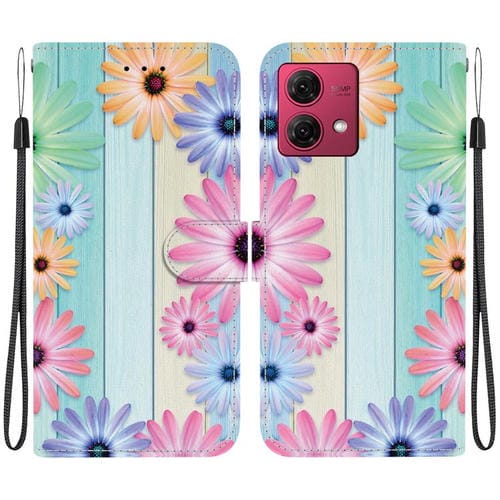 Funda de Cuero para Motorola Moto G84 con Dibujo de Colores y Textura de Cristal (Girasoles)