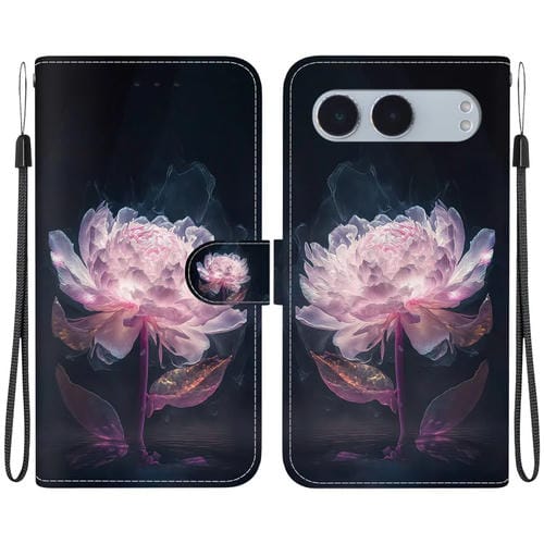 Funda de Cuero con Dibujo y Textura de Cristal para OnePlus Nord 4 (Peonía Morada)