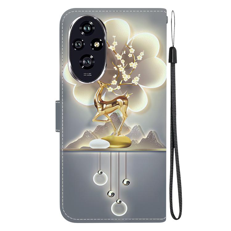 Funda de Cuero con Dibujo de Colores y Textura de Cristal para Honor 200 5G (Ciervo Sika)