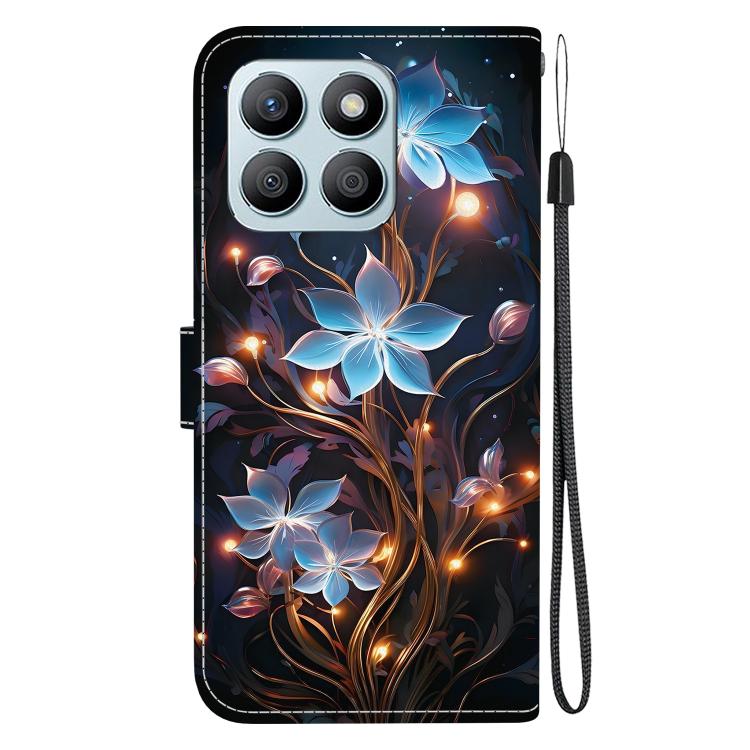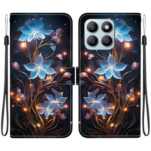 Funda de Cuero Honor X8B con Dibujo de Colores y Textura de Cristal (Flor de Linterna Pequeña)