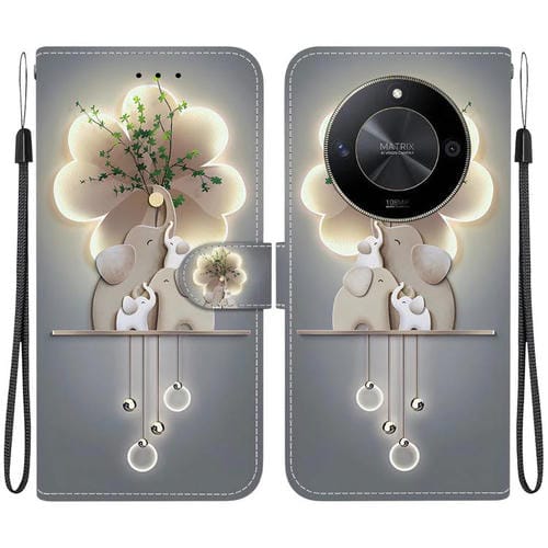 Funda de Cuero con Dibujo de Colores y Textura de Cristal para Honor X9B y Magic6 Lite (Elefantes)