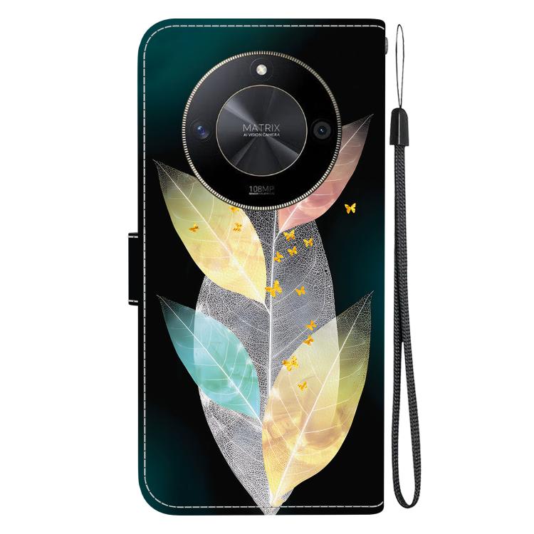 Funda de Cuero para Honor X9B y Magic6 Lite con Dibujo de Hojas de Colores y Textura de Cristal