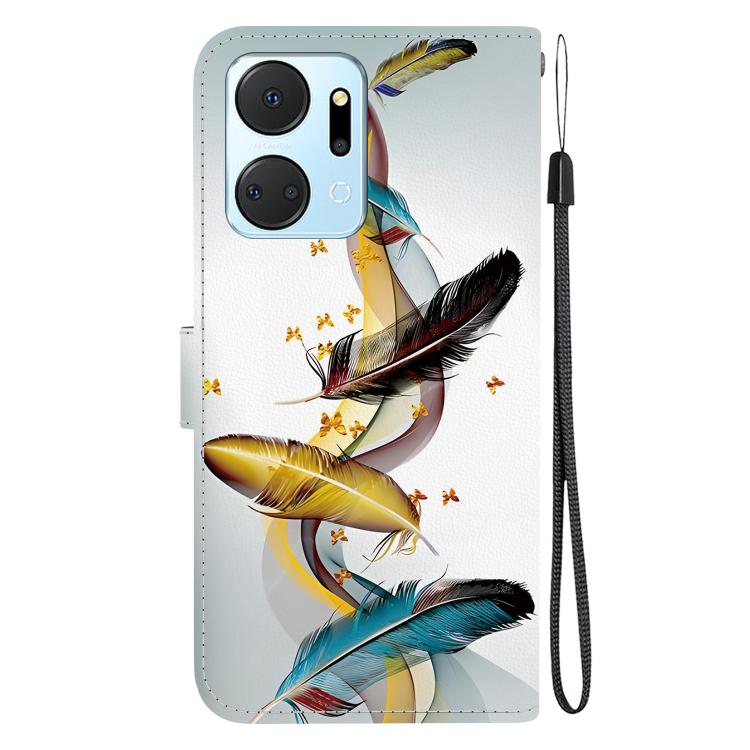 Funda de Cuero para Honor X7A con Dibujo y Textura de Cristal (Plumas de Mariposa Doradas)