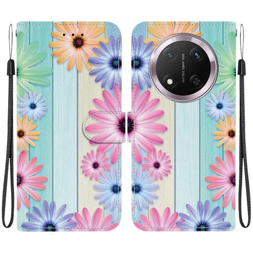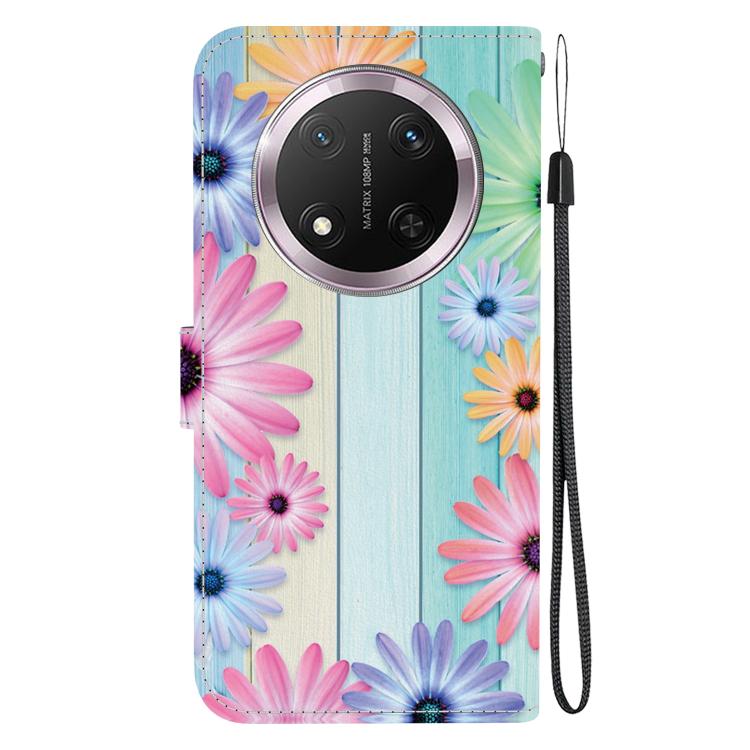 Funda de Cuero Honor X9C con Dibujo en Color y Textura de Cristal (Girasoles)