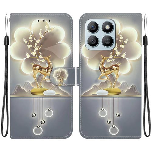 Funda de Cuero con Dibujo y Textura de Cristal para Honor X8B (Ciervo Sika)
