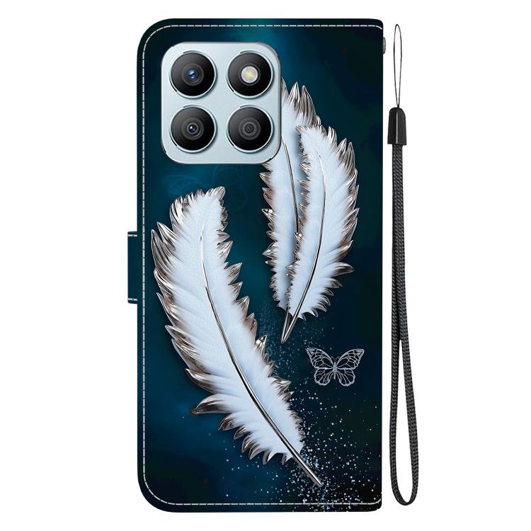 Funda de Cuero para Honor X8B con Dibujo y Textura de Cristal (Plumas de Mariposa Blancas)