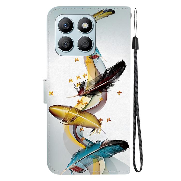 Funda de Cuero para Honor X8B con Dibujo y Textura de Cristal (Plumas de Mariposa Doradas)