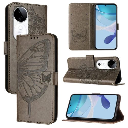 Funda de Cuero con Diseño de Mariposa En Relieve para El Teléfono Vivo S19 (Gris)