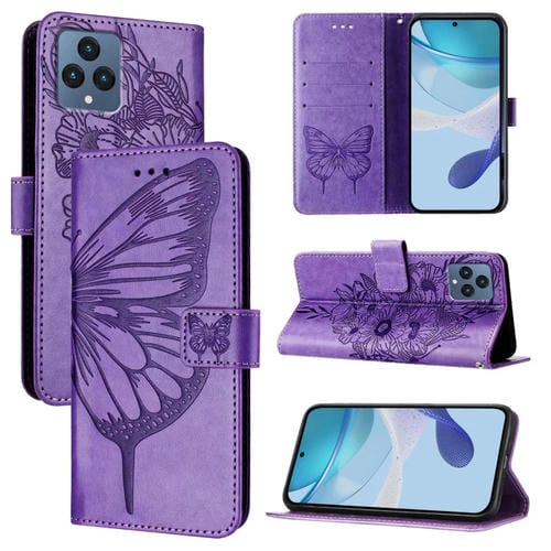 Funda de Cuero para T-Mobile Revvl 6/6X con Diseño de Mariposa en Relieve (Morado Claro)