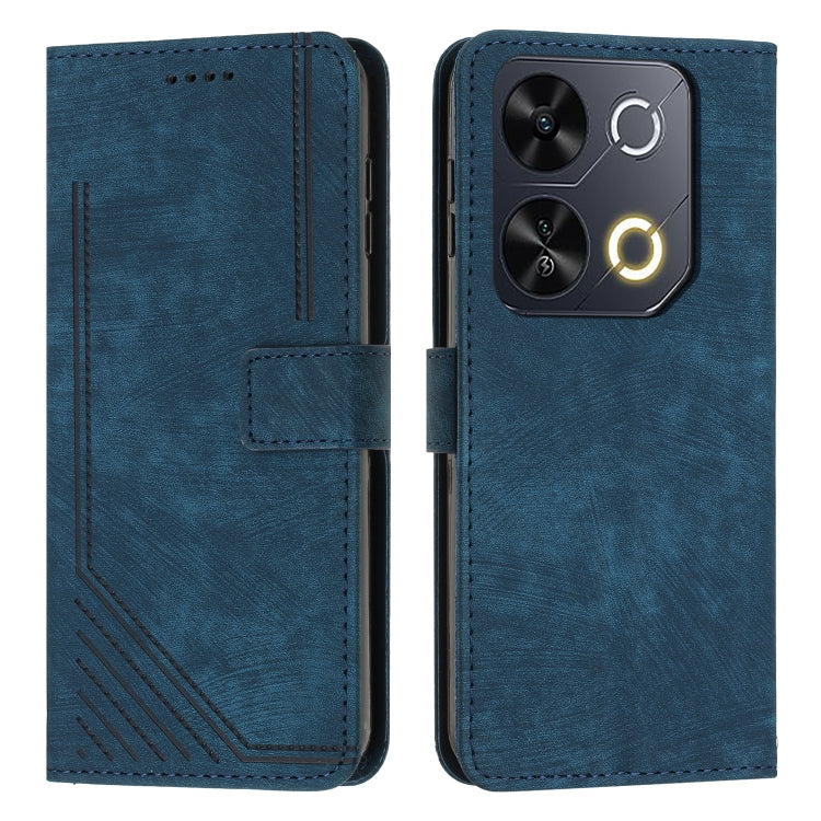 Funda de Cuero para Itel P65 con Diseño de Rayas y Cordón (Azul)