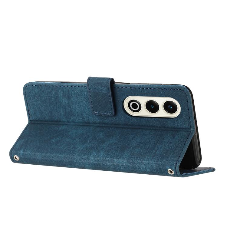 Funda de Cuero Itel S25 con Diseño de Rayas y Cordón (Azul)