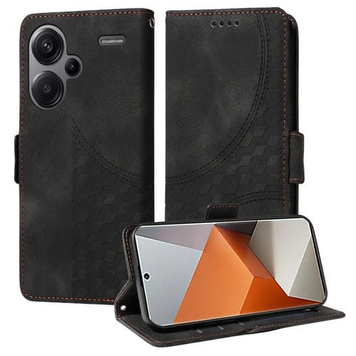 Funda de Cuero con Diseño de Rombos y Estrellas En Relieve para Redmi Note 13 Pro+ 5G (Negra)