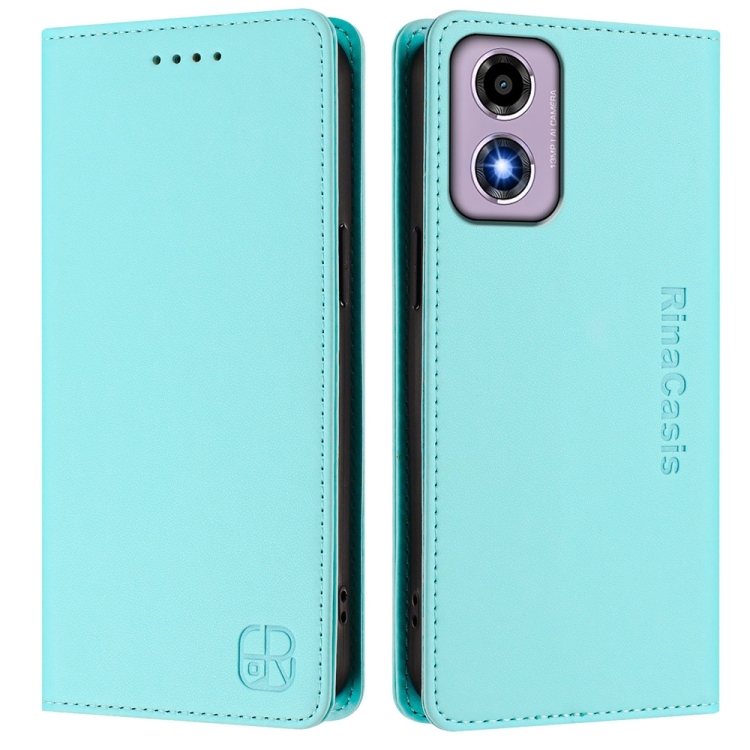 Funda de Cuero con Doble Pliegue y Succión Magnética para Motorola Moto E14/G24/G04/G04S Rc01 (Verde Menta)