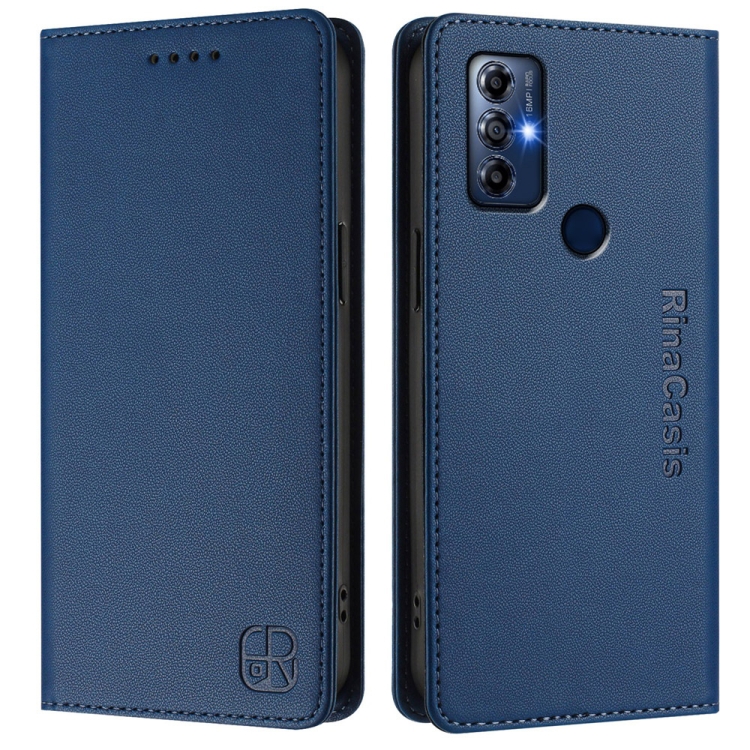 Funda de Cuero con Doble Pliegue y Succión Magnética para Motorola Moto G Play 2022 Rc01 (Azul Oscuro)