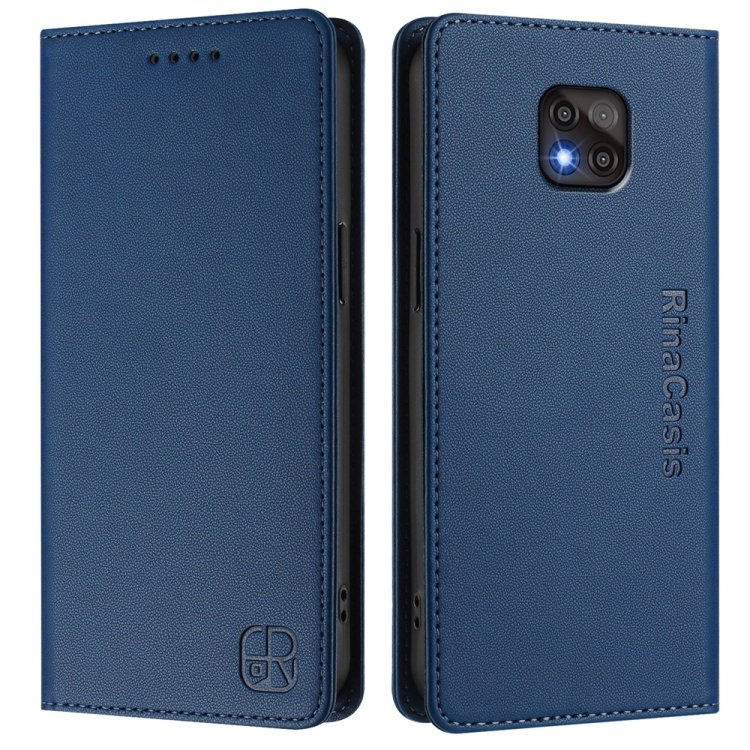 Funda de Cuero con Doble Pliegue y Succión Magnética para Motorola Moto G Power 2021 Rc01 (Azul Oscuro)