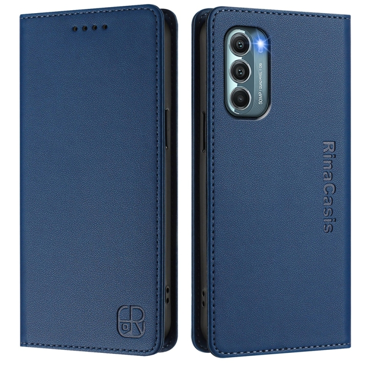 Funda de Cuero con Doble Pliegue y Succión Magnética para Motorola Moto G Stylus 5G 2022 (Azul Oscuro)
