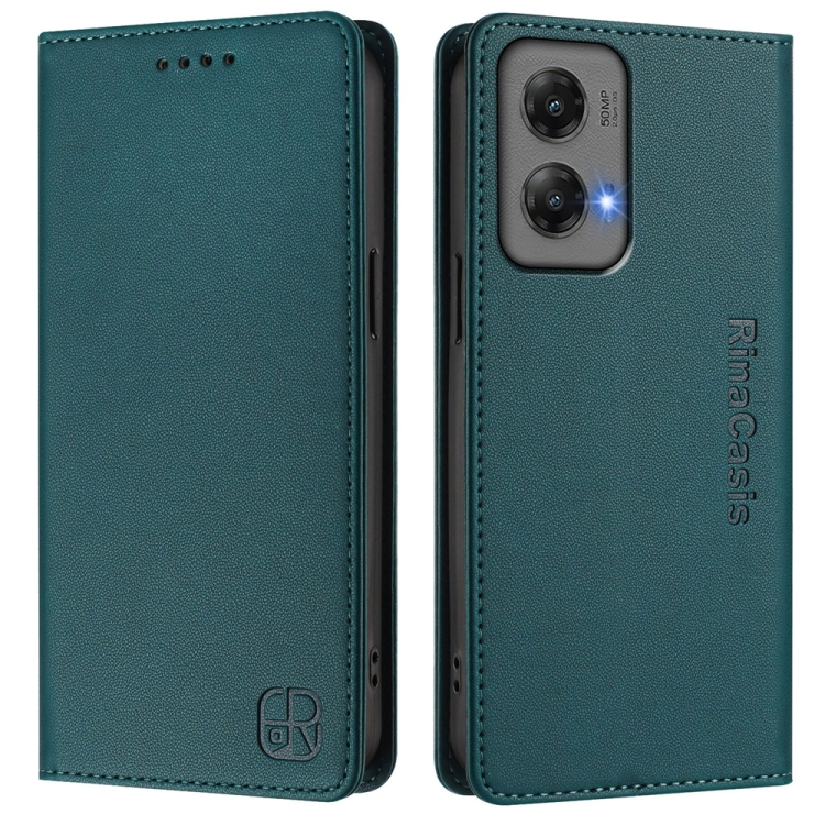 Funda de Cuero Motorola Moto G Stylus 5G 2024 Rc01 con Doble Pliegue y Succión Magnética (Verde Oscuro)