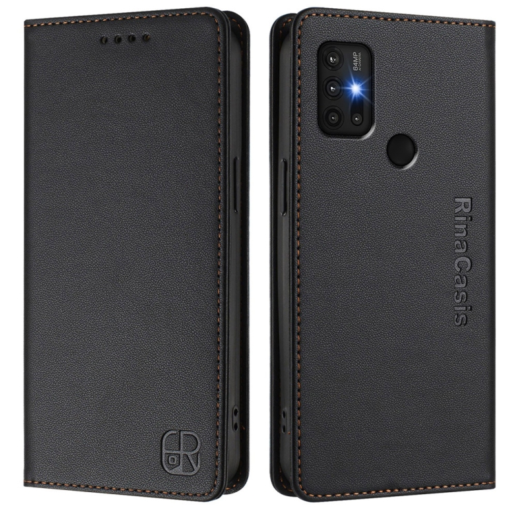 Funda de Cuero con Doble Pliegue y Succión Magnética para Motorola Moto G30/G20/G10 Rc01 (Negra)