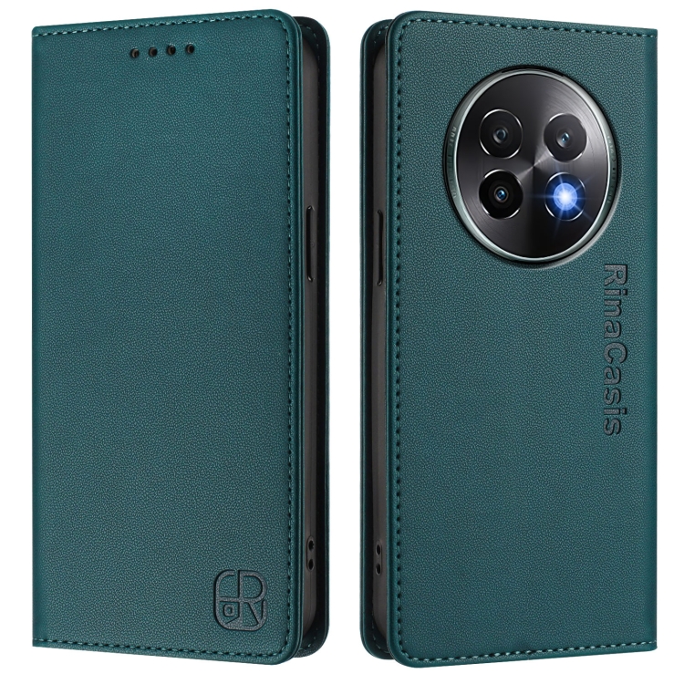 Funda de Cuero con Doble Pliegue y Succión Magnética para Teléfono Realme 13+ 5G Rc01 (Verde Oscuro)