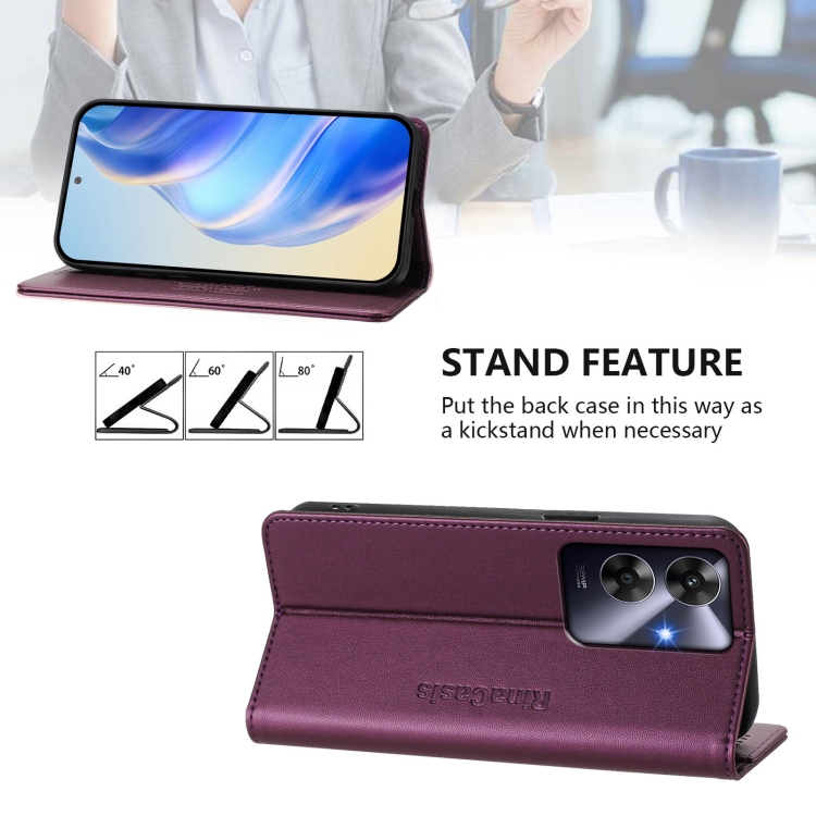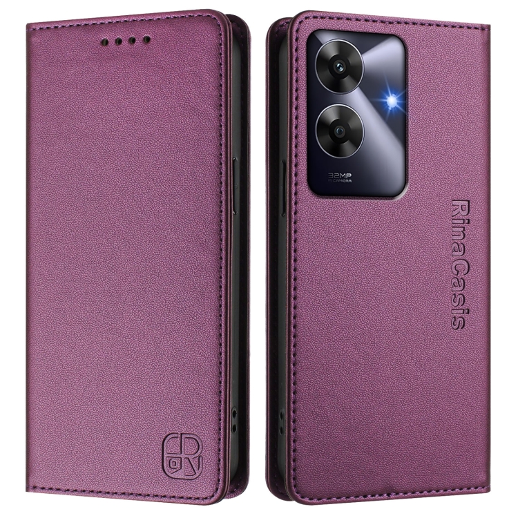 Funda de Cuero con Doble Pliegue y Succión Magnética para Teléfono Realme Note 60 4G/C61 4G India Rc01 (Violeta)
