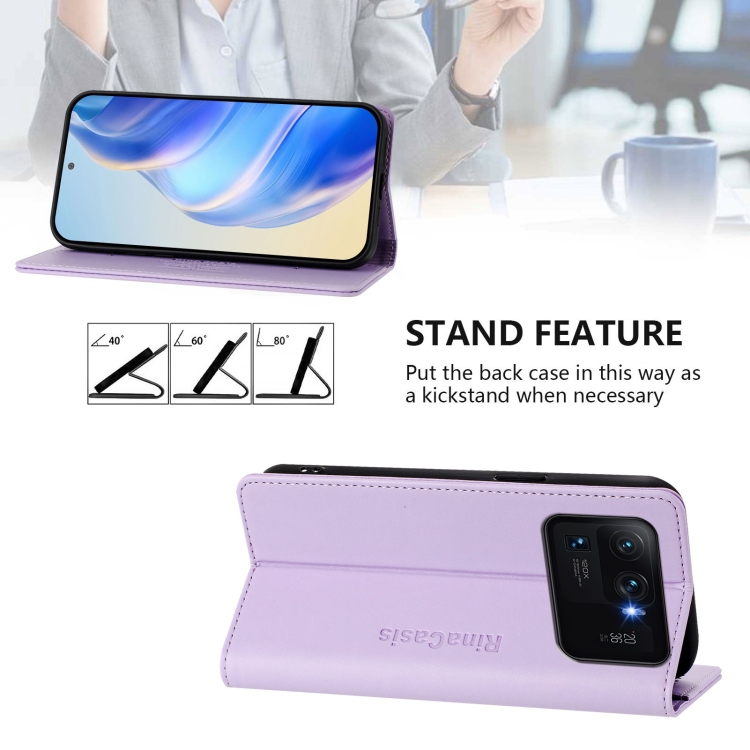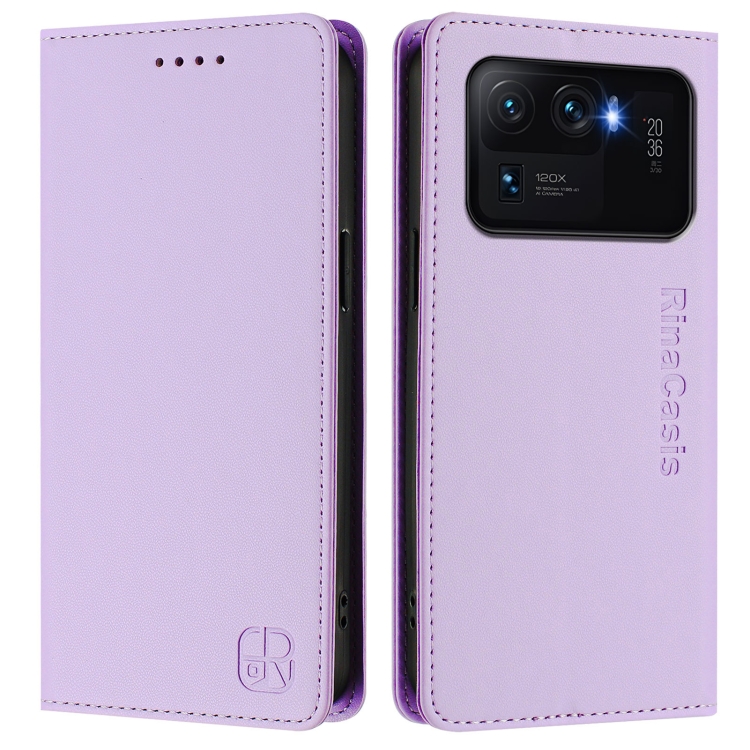 Funda de Cuero con Doble Pliegue y Succión Magnética para Xiaomi Mi 11 Ultra Rc01 (Morado Claro)