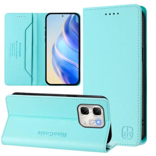 Funda de Cuero con Doble Pliegue y Succión Magnética Rfid para Infinix Hot 50I 5G / Smart 9 4G Rc01 (Verde Menta)