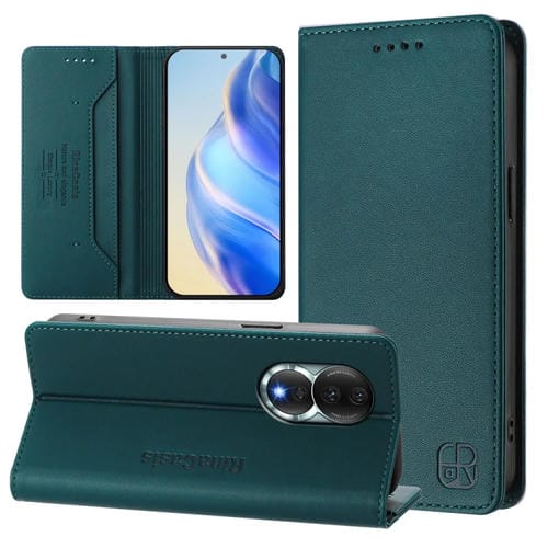 Funda de Cuero Rfid para Honor 80 Rc01 con Doble Pliegue y Succión Magnética (Verde Oscuro)