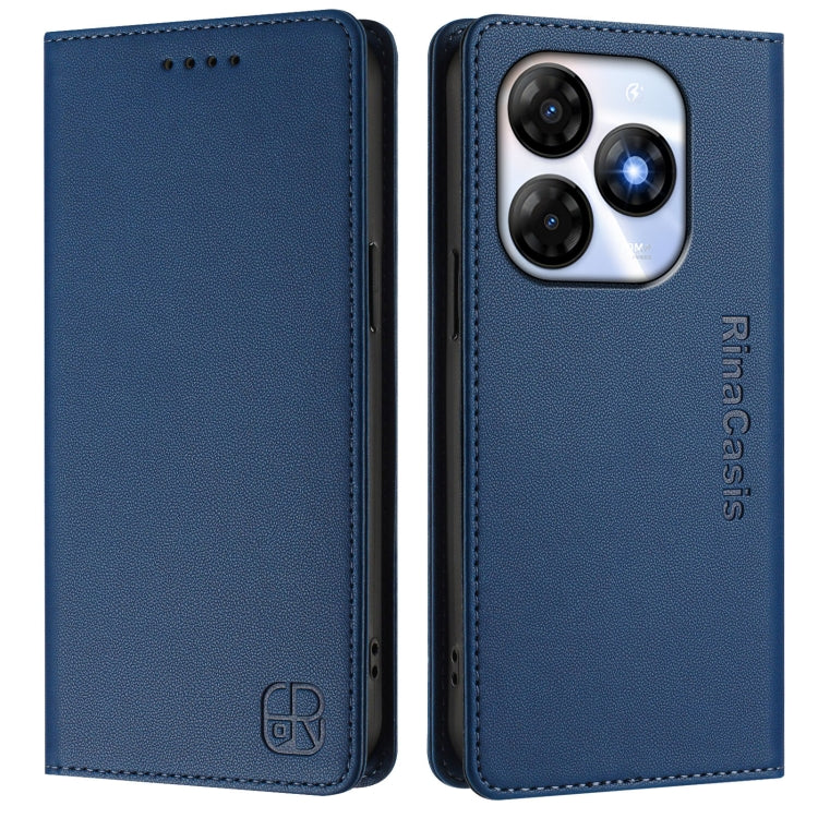 Funda de Cuero con Doble Pliegue y Succión Magnética Rfid para Itel P55 4G e Infinix Smart 8 Rc01 (Azul Oscuro)