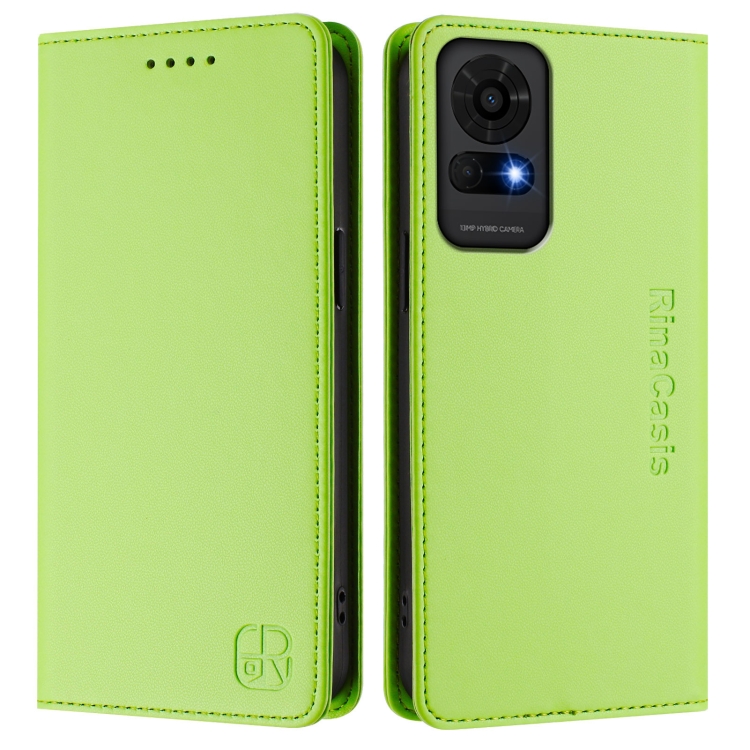 Funda de Cuero para TCL 50 Le Rc01 con Doble Pliegue y Succión Magnética Rfid (Verde Hierba)