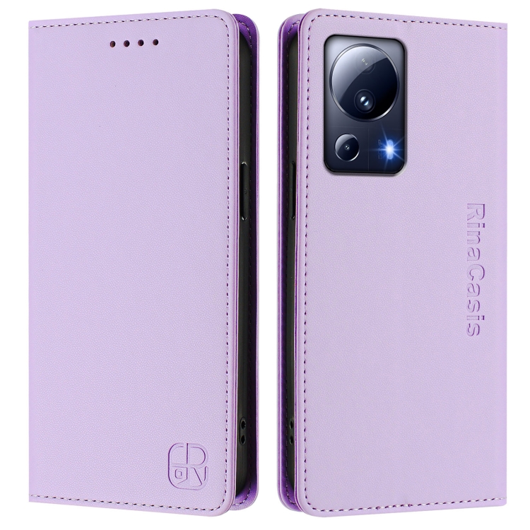 Funda de Cuero con Doble Pliegue y Succión Magnética Rfid para Xiaomi 13 Lite 5G/Civi 2 Rc01 (Morado Claro)