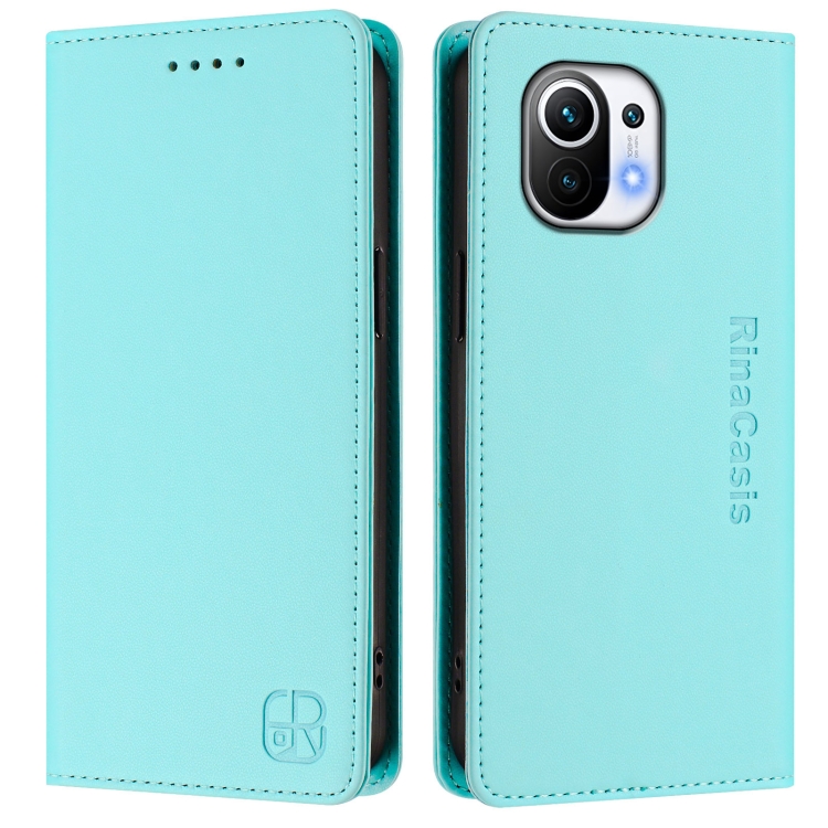 Funda de Cuero con Doble Pliegue y Succión Magnética Rfid para Xiaomi Mi 11 Rc01 (Verde Menta)
