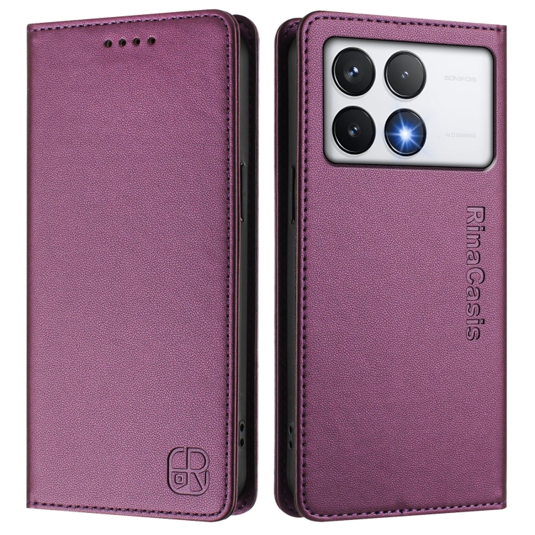 Funda de Cuero con Doble Pliegue y Succión Magnética Rfid para Xiaomi Poco F6 Pro 5G Rc01 (Violeta)