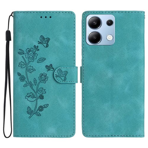 Funda de Cuero con Estampado de Flores y Mariposas para Redmi Note 13 4G (Azul Cielo)