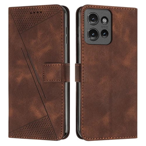 Funda de Cuero Triangular para Motorola Edge 50 Dream con Cordón (Marrón)