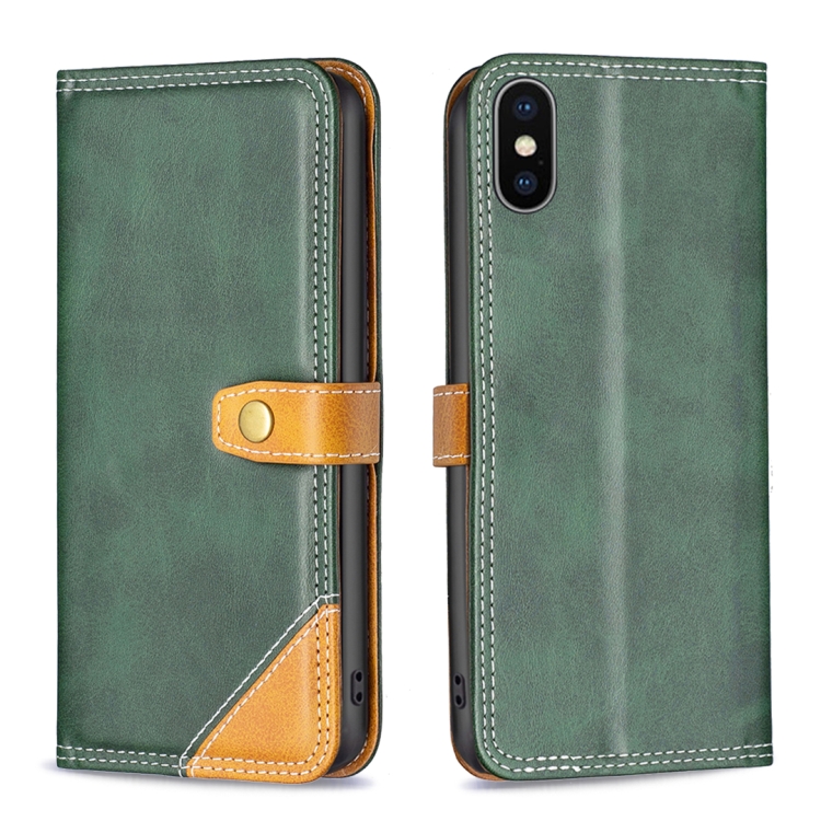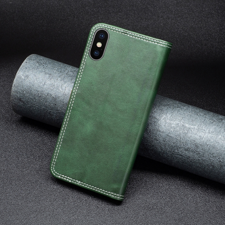 Funda de Cuero con Hilo de Coser Doble a Juego para iPhone X / Xs (Verde)