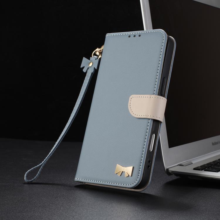 Funda de cuero con lazo metálico y correa para la mano para Xiaomi 15 (azul claro)