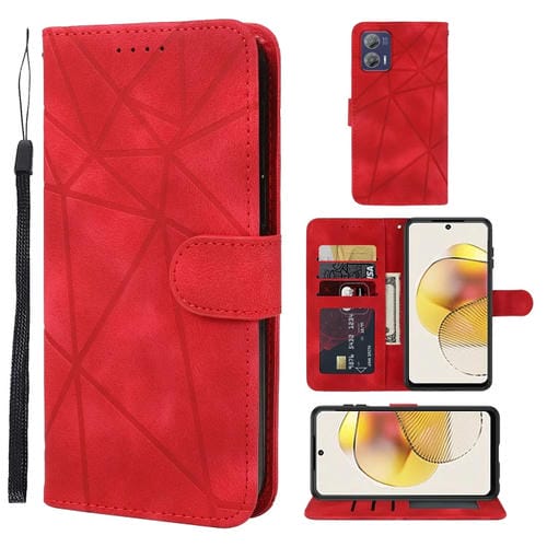 Funda de Cuero para Motorola Moto G73 con Líneas Geométricas y Tacto Sedoso (Rojo)