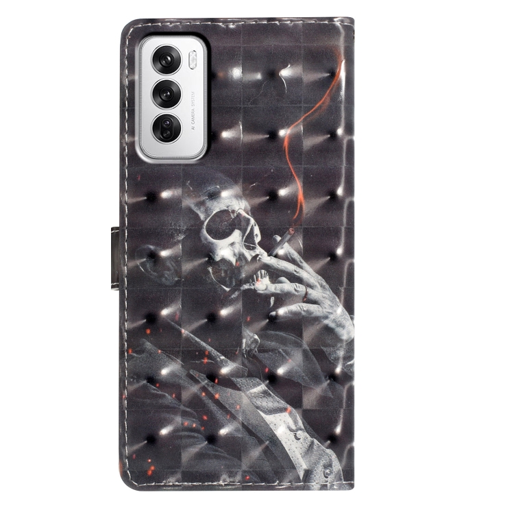 Funda de Cuero con Patrón 3D para Teléfono Oppo Reno12 Global (Calavera)