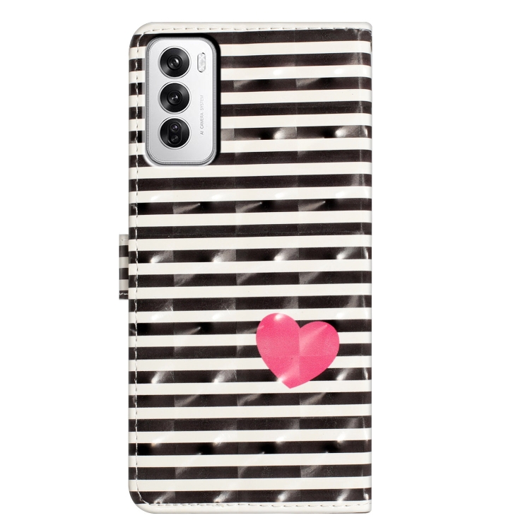 Funda de Cuero con Patrón 3D para Teléfono Oppo Reno12 Global (Corazón Rayado)