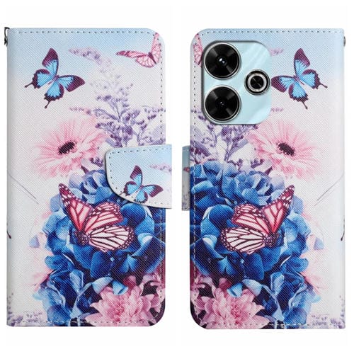 Funda de Cuero con Patrón de Dibujo de Colores para Xiaomi Redmi 13 4G (Mariposa Morada)