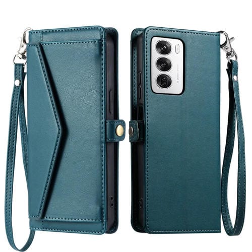 Funda de Cuero con Ranura para Múltiples Tarjetas y Billetera Global para Oppo Reno12 5G con Cordón (Verde)
