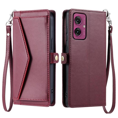 Funda de Cuero para Motorola Moto G55 con Ranura para Tarjetas y Cordón (Rojo Vino)