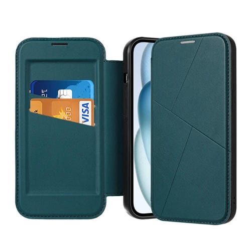 Funda de Cuero para iPhone 14 Pro Ranuras para Tarjetas Rfid Carcasa Magnética (Verde)