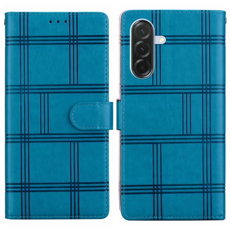 Funda de cuero con relieve a cuadros para Samsung Galaxy A26 5G (azul)