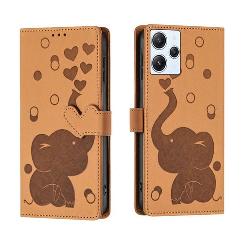 Funda de Cuero con Relieve de Elefante de Dibujos Animados para Redmi 12 4G/5G (Amarillo)