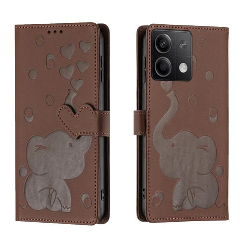 Funda de Cuero con Relieve de Elefante de Dibujos Animados para Redmi Note 13 5G (Marrón)